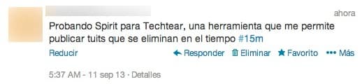 Una vez publicado nuestro mensaje en Twitter, incluyendo la etiquete que define su tiempo de vida, Spirit se encargará de eliminarlo transcurrido el tiempo señalado, sin necesidad de que intervengamos.