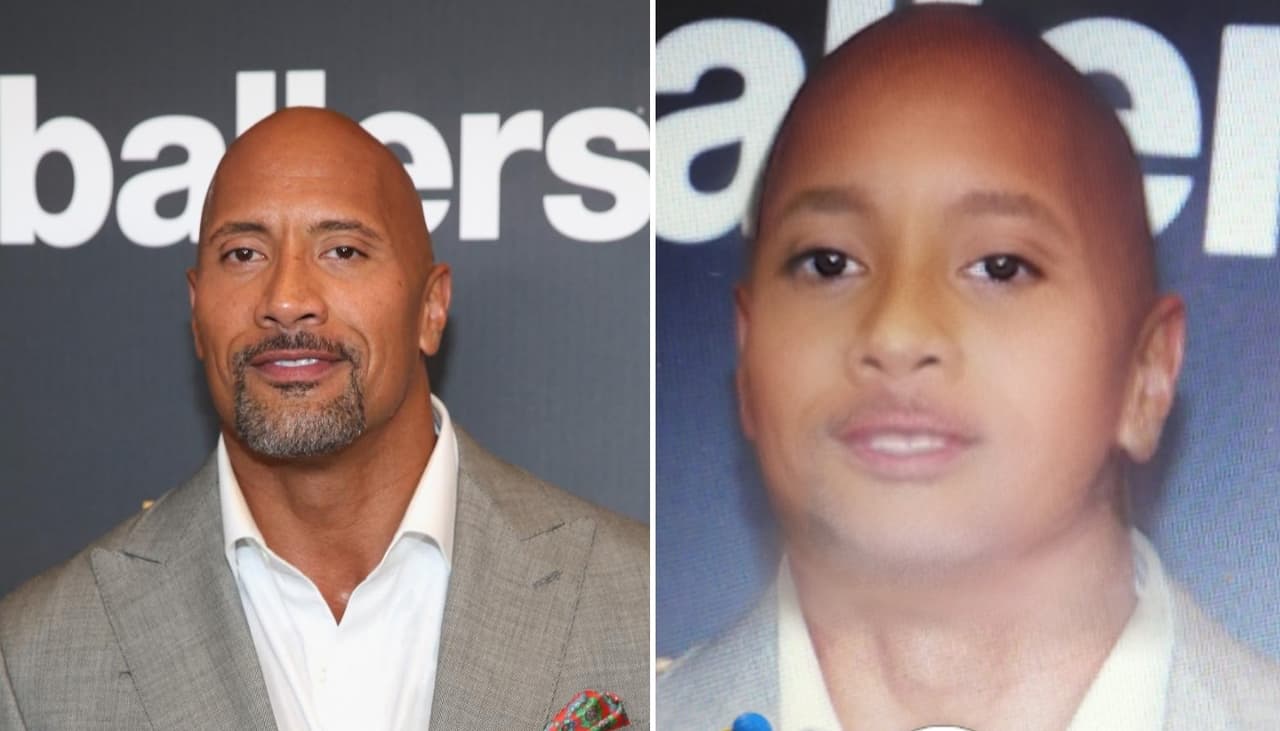 El imponente aspecto de The Rock toma un giro muy gracioso al mostrarlo como un infante, que además se ve incómodo ante la fotografía para el anuario. ¡Luce muy tierno!