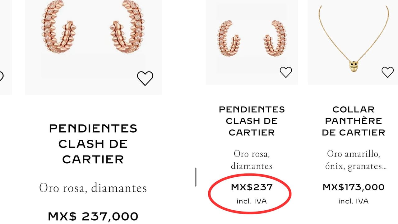 El pasado 19 de abril resultó ser el día que el mexicano compartió en Twitter que al navegar por la página web de Cartier notó que uno de sus artículos, un par de aretes de oro rosa con diamantes, tenía un precio de 237 pesos mexicanos, lo cual le pareció extraño, ya que comúnmente una pieza de la marca cuesta miles de pesos.