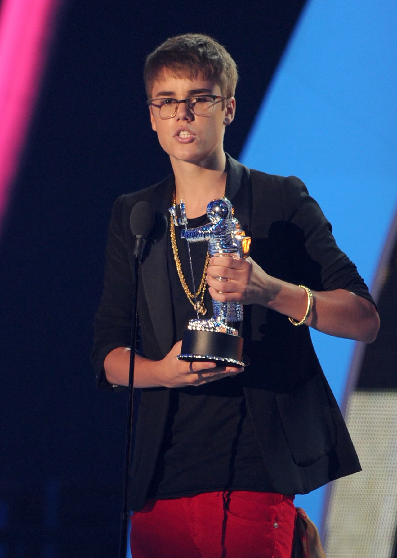Con apenas 17 años, Bieber ya es dueño de uno de los premios más prestigiosos: el de MTV Video Music Awards como el Mejor artista masculino del año. Cuando ganó el premio, le agradeció a Dios.