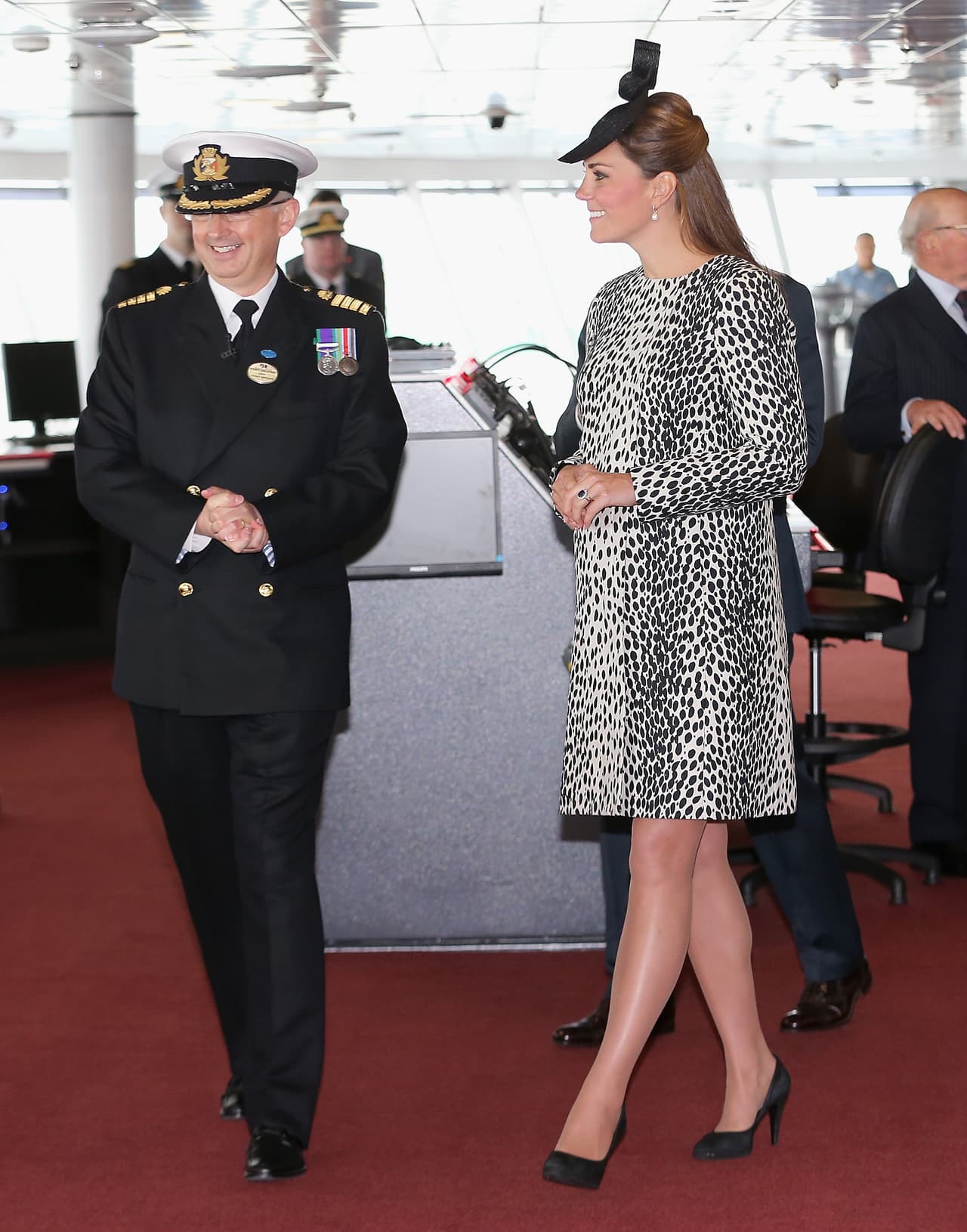 Su última presentación se debió a ser nombrada en la botadura de un trasatlántico de la compañía Princess Cruises, encuentro para el cual la Duquesa de Cambridge decidió lucir un vestido con estampado de dálmata y unos zapatos de tacón de color negro.
