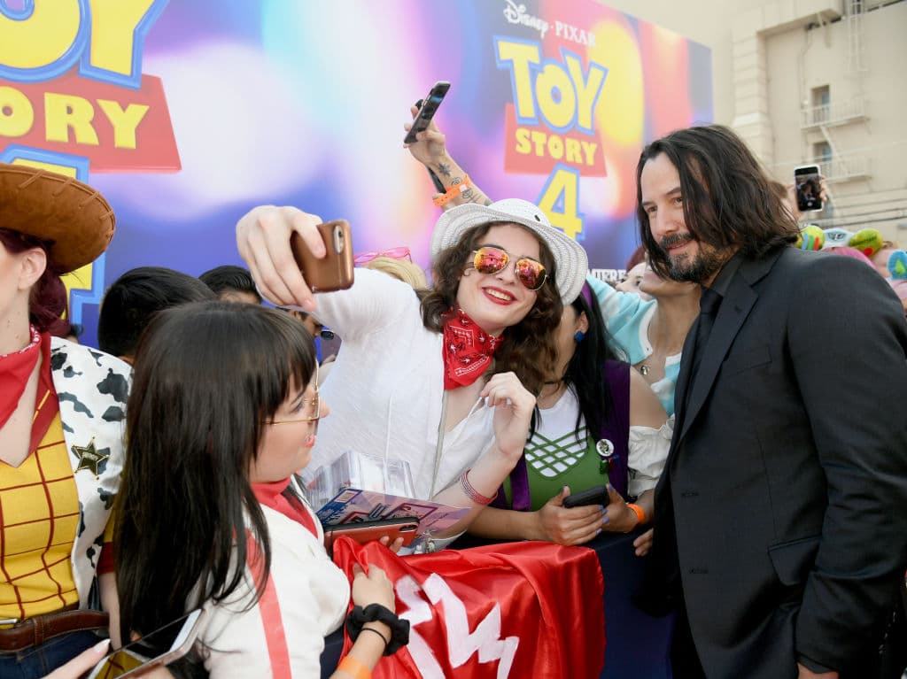 Para seguir mostrando su agradecimiento a los fans, Keanu no escatimó en convivir con ellos antes de la primera función de Toy Story 4.