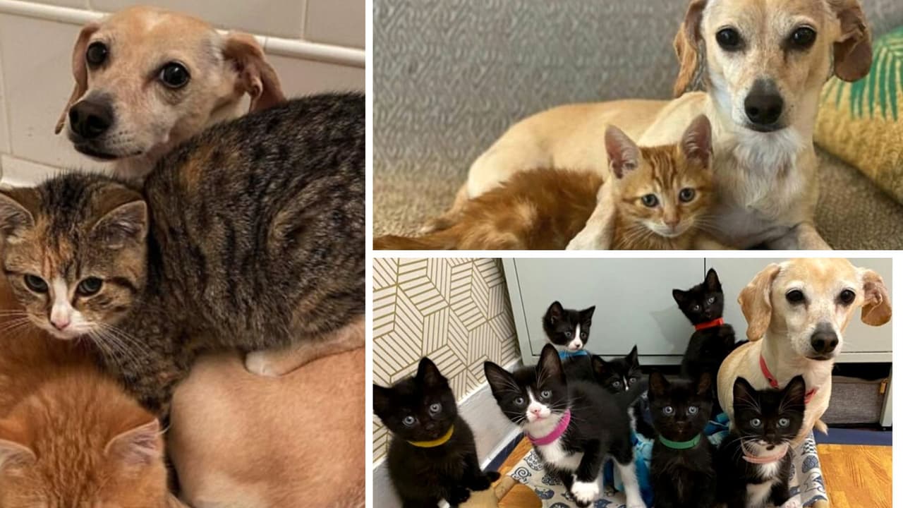 Perrita cuida gatos como sus bebés y se gana el cariño de Internet