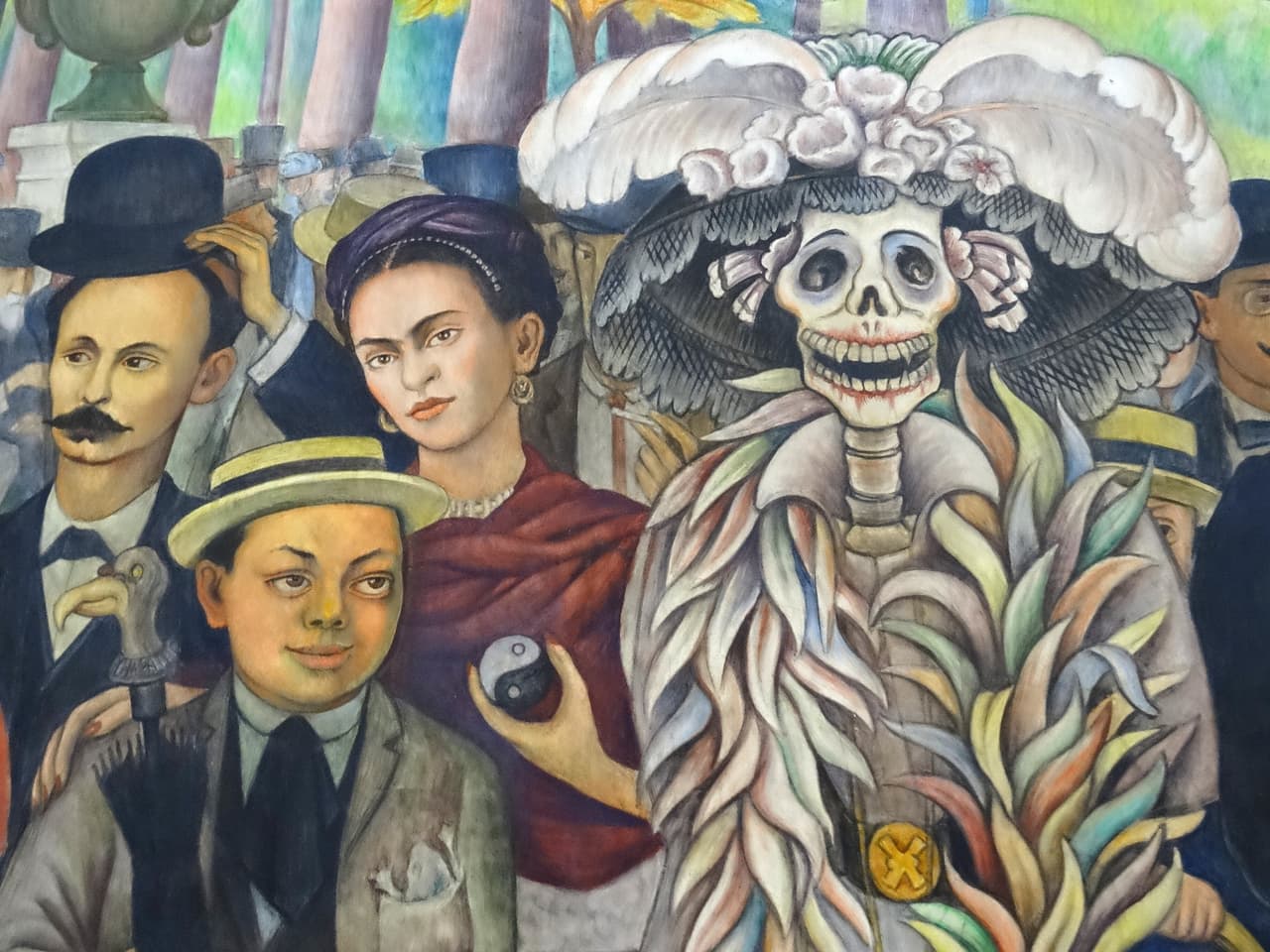 Rivera renombró a este personaje como La Catrina. "Catrín" era el término que se usaba para las personas elegantes con dinero y que les encantaba presumirlo. También cambió un poco su diseño al vestirla, porque la original de Posada, a excepción de su sombrero, estaba como Dios la trajo al mundo (bueno, nadie nace siendo un esqueleto, en fin, ustedes entienden).