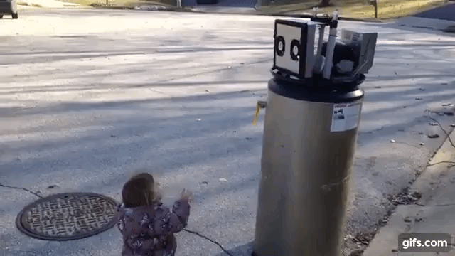 Lo genial del momento es que lo que la pequeña Reyna ve realmente no es un robot, sino un calentador de agua que fue abandonado en la calle (que sí, honestamente luce como si fuera una máquina inteligente). ¡Mira el momento completo!