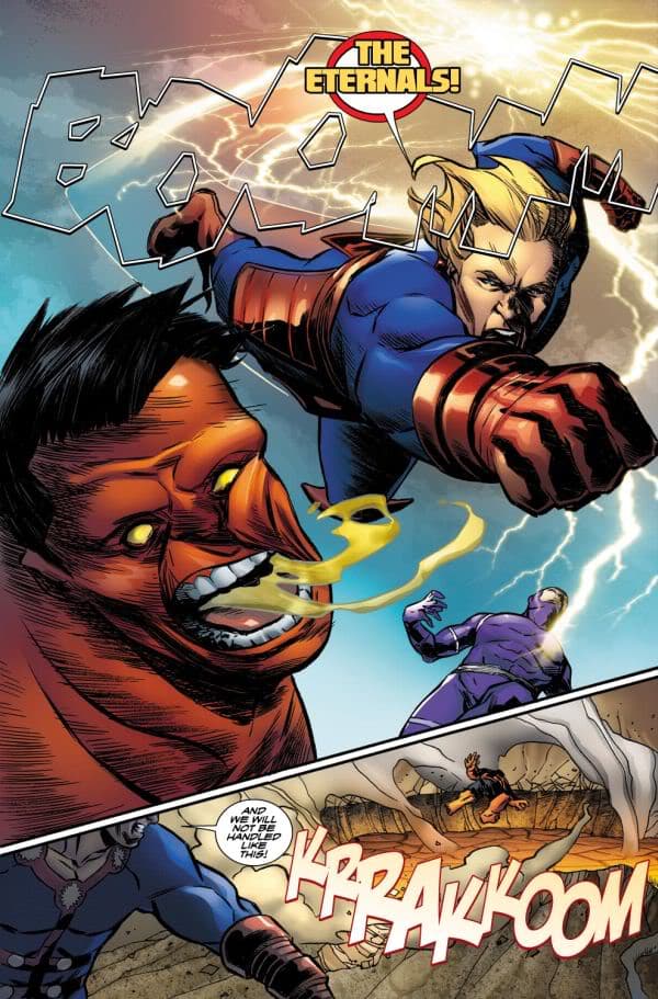 Son una creación de Jack Kirby, vieron la luz de los cómics por primera vez en 1976. Los Eternos pertenecen a la raza alienígena de los Celestiales (la primera en usar las Gemas del Infinito). Tienen su propia mitología, liga heroica, sociedad y filosofía (tal como los humanos).