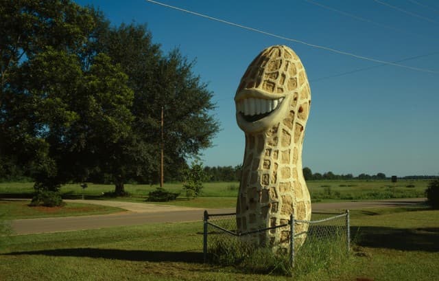 Antes de iniciar la carrera política que le llevaría a la presidencia de Estados Unidos, Jimmy Carter fue un plantador de maní en su nativa Plains, Georgia. En la campaña electoral de 1976, sus partidarios en Indiana levantaron un gigantesco maní sonriente, emulando la característica sonrisa de Carter. El monumento ahora está en la carretera de Plains.