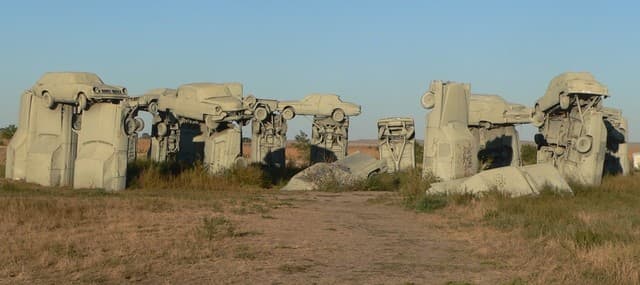 Stonehenge, el famoso monumento megalítico inglés, tiene su émulo en Alliance, Nebraska, pero en vez de enormes piedras dispuestas es círculo, en Carhenge se utilizaron coches clásicos, que tienen las narices insertadas en el suelo y encima, más autos.