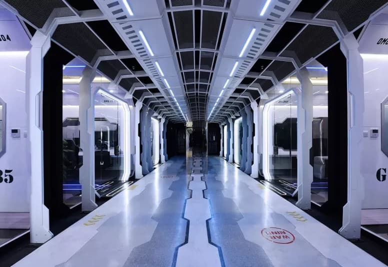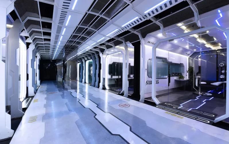 Las oficinas tienen un enfoque futurista y privado, ideal para sentir que de alguna forma controlas lo que sucede abordo de una nave espacial. Los toque minimalistas con luces claras o neón parecen imprescindibles en este lugar.