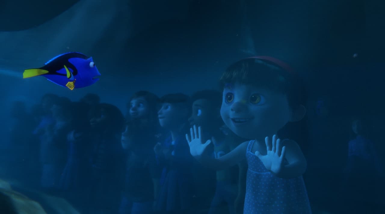 En Buscando a Dory se muestra una escena donde aparecen un grupo de niños en el acuario de la localidad. Una de las pequeñas que está ahí es Riley, la protagonista de Intensamente.