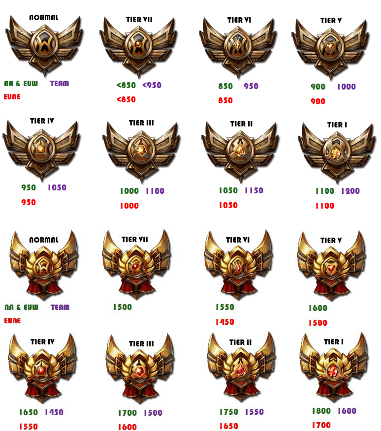 Diferencias de MMR entre ligas y divisiones de Bronce y Oro