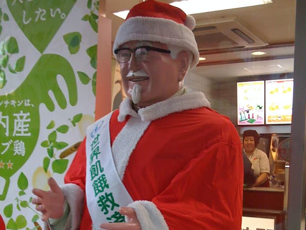 Navidad no es la gran cosa en la isla, apenas algunos cristianos la festejan. ¿Dónde? En Kentucky Fried Chicken, ¡por supuesto! Reúne a la familia alrededor de un cubeta de pollo frito y siente la calidez de las fiestas. Aunque no lo creas, debido a la escasez de pavo, es una verdadera tradición.