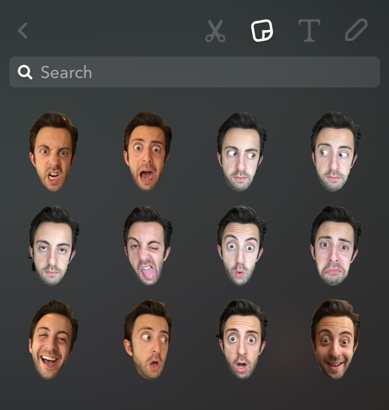 Con las tijeras, puedes cortar cualquier parte de una imagen y transformarla en un emoji. La función del pincel, es la de darle un toque artístico con filtros a nuestros recuerdos.