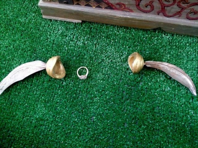 Este increíble kit de Quidditch fue fabricado por CustomMade en colaboración con el carpintero Anthony Albano. CustomMade es una joyería que se especializa en anillos de compromiso a pedido. Como puedes ver, están dispuestos a echarte una mano no importa lo poco tradicional que vaya a ser tu propuesta.
