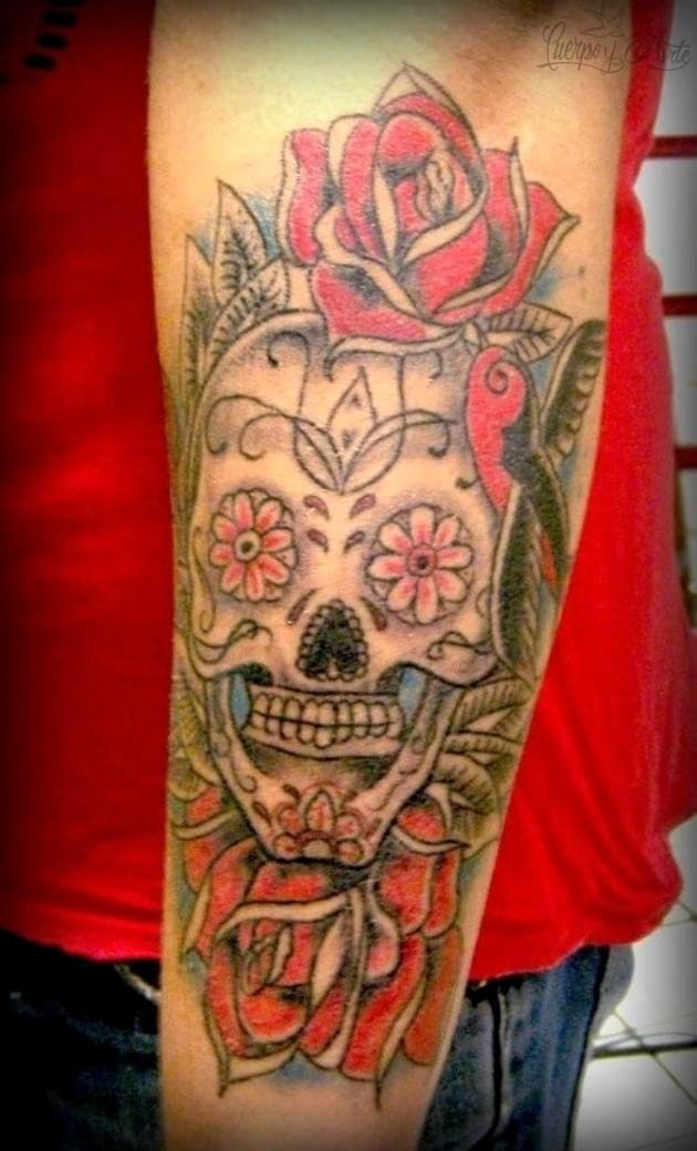 El último diseño de Iván consta de una calavera de azúcar, un símbolo mexicano por excelencia que junto a la santísima muerte constituyen los dos diseños más populares en los llamados tatuajes del día de los muertos. Éste fue realizado por el tatuador Joel Hernández en Salamanca Gto., teniendo un costo de $1800, equivalentes a unos USD 140. Sobre su significado, Iván nos contó que son más que uno. En sus palabras: