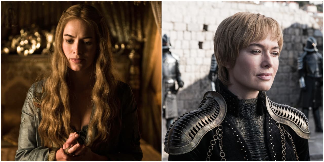 Desde el inicio hasta ahora, Cersei permanece en el mismo lugar de Reina, aunque en el medio han sucedido muchas cosas, entre ellas, ser abucheada y expuesta desnuda a todo Desembarco del Rey como castigo por sus pecados. Claro, su venganza fue mucho más cruel. Y tanta maldad en su corazón la ha vuelto muy oscura, y se nota en su cambio de apariencia.
