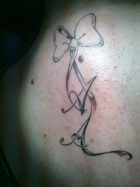 Este tattoo es un lazo, el lazo de Minnie. Los lazos se unen a las iniciales de sus hermanas, y según nos cuenta es uno de sus tatuajes más especiales, ya que representa la unión de Noe con sus hermanas.