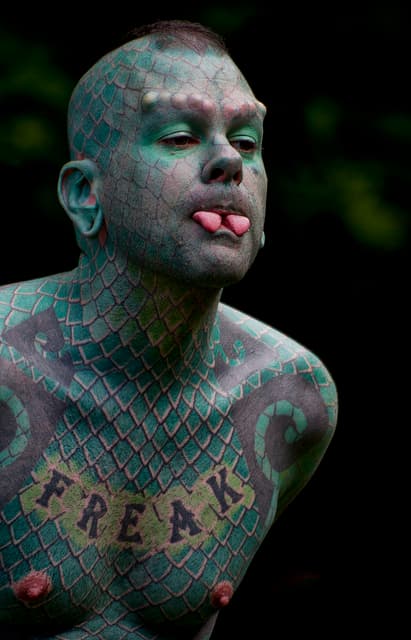 Así es, se colocan bolitas, barras, anillos o pequeños tubos de silicona médica debajo de la epidermis, provocando estos realces en la piel. Con estos anillos no sólo se crean cuernos en la frente, al igual que con los tatuajes o perforaciones, la imaginación es el límite. Los realces en la piel van desde cuernos, hasta escamas o simulaciones de pieles de animales.