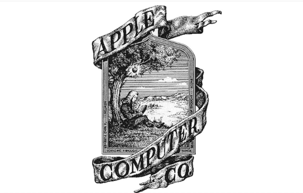 El logo original, contrariamente a lo que aparenta, es del año 1976. En él se observa la mítica manzana que cayó sobre la cabeza de Newton. La simplificación minimalista también tomó el control de este logotipo y actualmente la compañía Apple se identifica con este sencillo diseño.