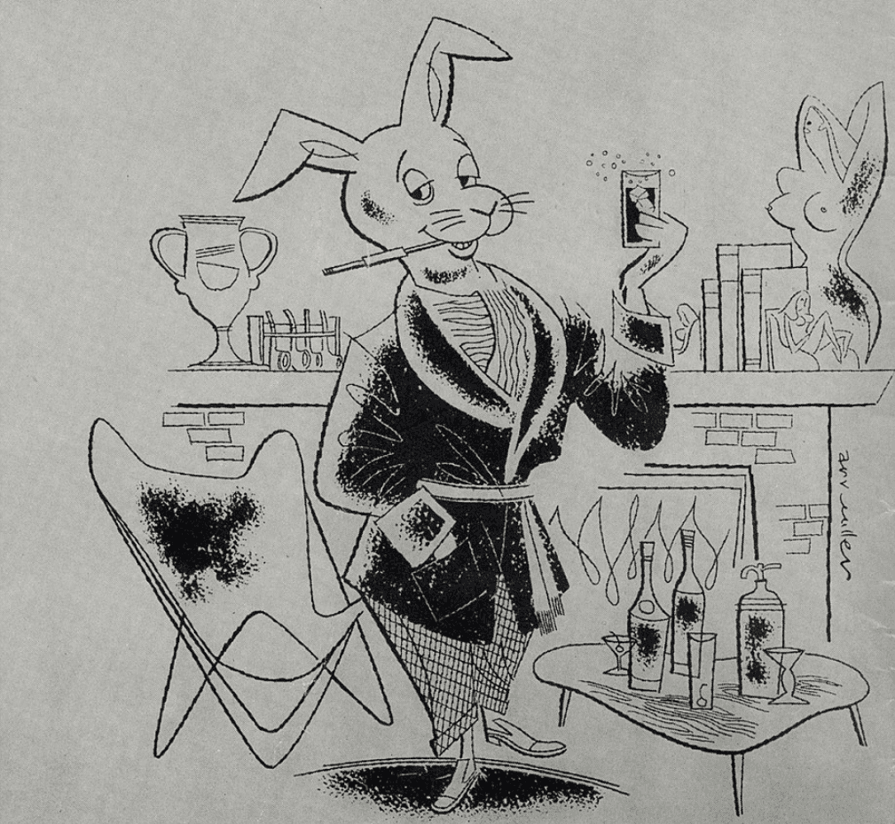 Esta marca fue originalmente una publicación dirigida al público masculino, donde se incluían fotografías eróticas y artículos de interés general, mismos que apuntaban a un público con cierto estatus social. Su primer logotipo mostraba a qué clase de hombre se dirigía la revista, representando a sus lectores en la forma de un conejo millonario.