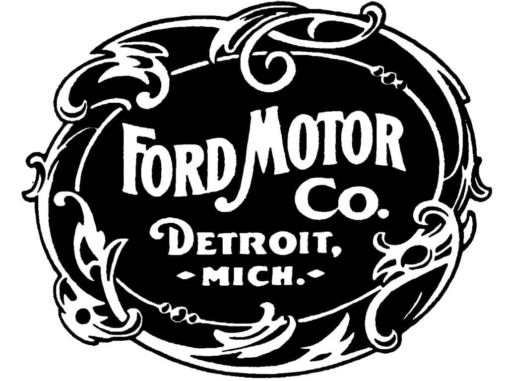 La Ford Motor Company fue fundada en 1903 y desde ese entonces ha sido una de las más importantes compañías fabricantes de automóviles. Entre otras cosas, fue en esta empresa donde se desarrolló la idea de la producción en serie mediante líneas de ensamblaje. Su primer logotipo fue el siguiente.