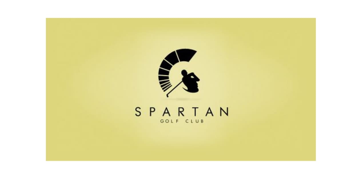 El logo de este club de golf está formado por dos imágenes. La primera es un jugador de golf que está a punto de golpear una pelota. La otra, compuesta por las líneas que lo rodean y se hacen más gruesas, simulan el casco de un espartano.