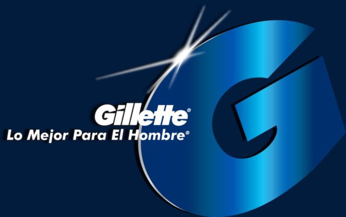 El corte diagonal en la letra G y la letra la i pretende simular la precisión de una hoja de afeitar.