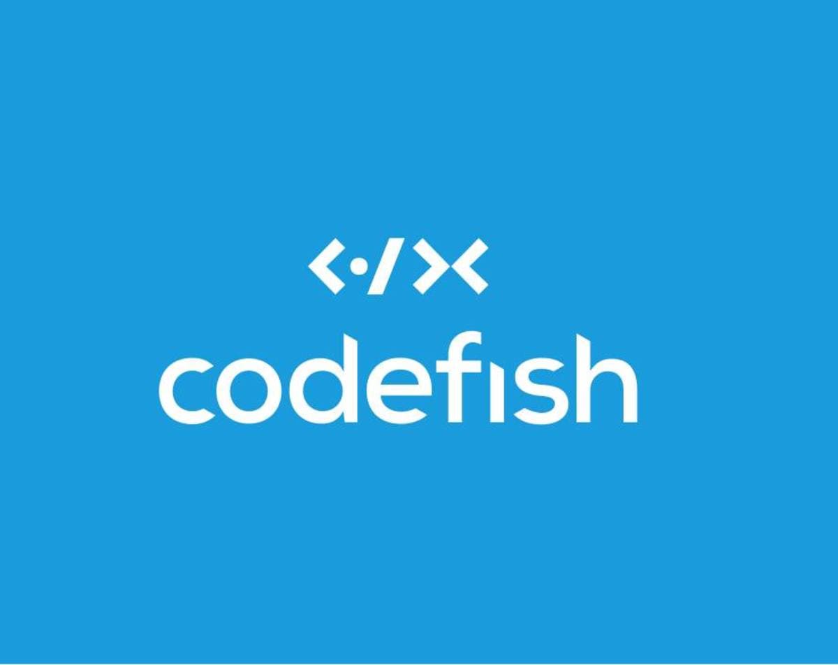 El pescado está formado por símbolos que remiten al área de la empresa. Son arquitectos de software.