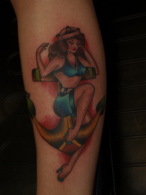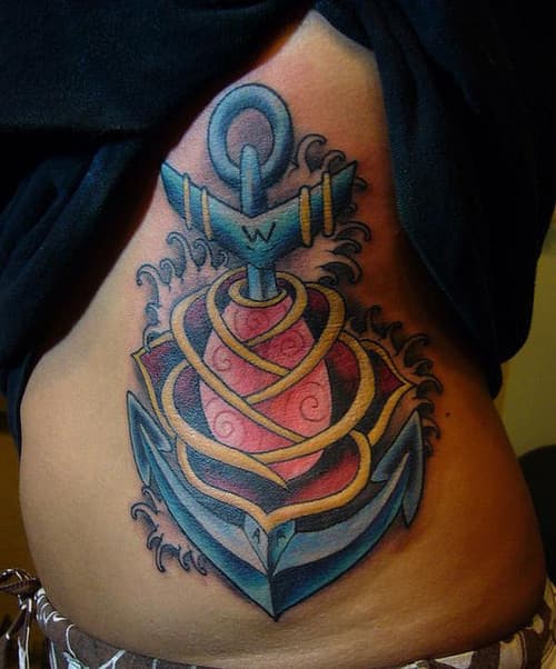 Las anclas son otra de las figuras presentes en los tatuajes de los marineros, y actualmente actúan como complementos de tatuajes más grandes; esta figura representa la estabilidad y la fuerza.