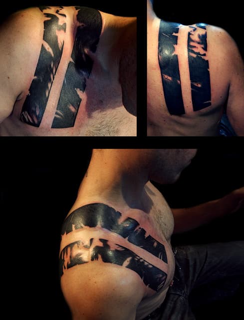 La belleza de un tatuaje en tinta negra puede ser incomparable, y un diseño simple puede ser sencillamente genial... o puede ser un verdadero desastre. Todo depende de la proporción, como una vez comentamos hace un tiempo. Parece que todos coinciden en que hay un límite donde ya es demasiada el área cubierta por la tinta, y que rebasar ese límite ya es de mal gusto.