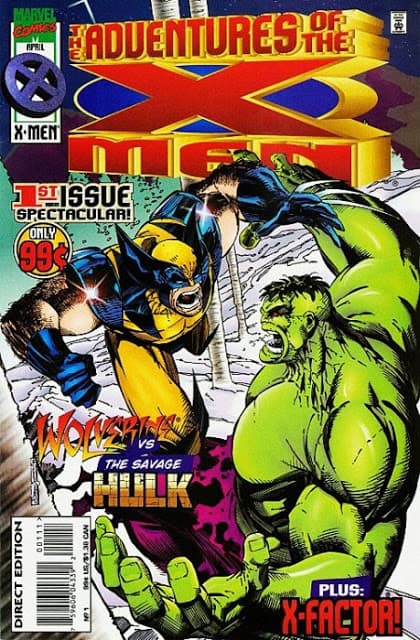 Uno de los enfrentamientos más emblemáticos de este par, tuvo lugar en 1996 cuando el primer número de The Adventures of the X-Men salió a la luz. En esta obra, Hulk no tiene oportunidad contra la velocidad de Wolverine, quien no detiene su paliza hasta que otros mutantes intervienen.