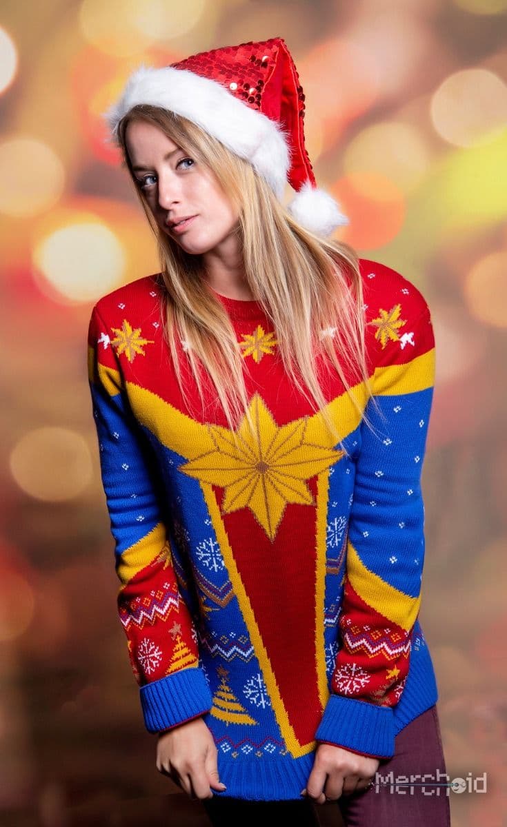 Existen muchos otros modelos de suéteres, entre ellos el de Capitana Marvel, que te permite absorber energía navideña y lanzarla en forma de blast (no es cierto esto último, pero sería fantástico que así lo fuera).