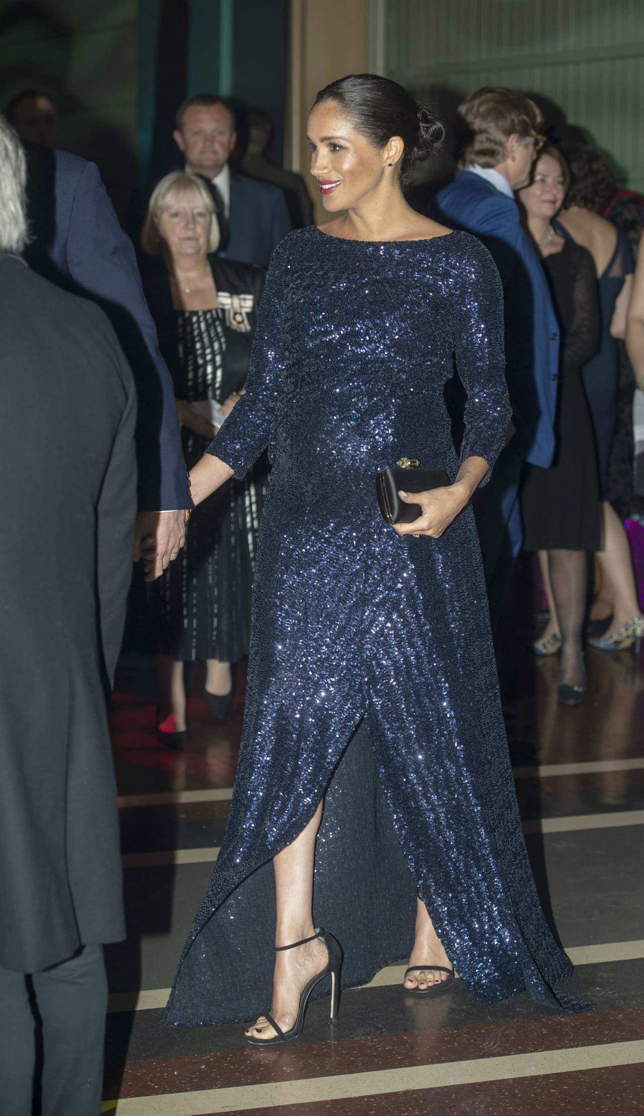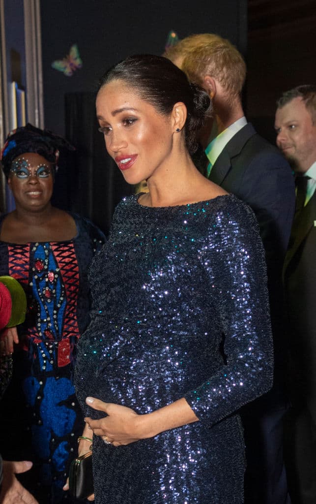 Este vestido brillante lo usó Meghan a finales de enero durante una presentación especial de Cirque du Soleil-TOTEM en Londres. La mejor muestra de que el embarazo y el glamour SÍ son compatibles.
