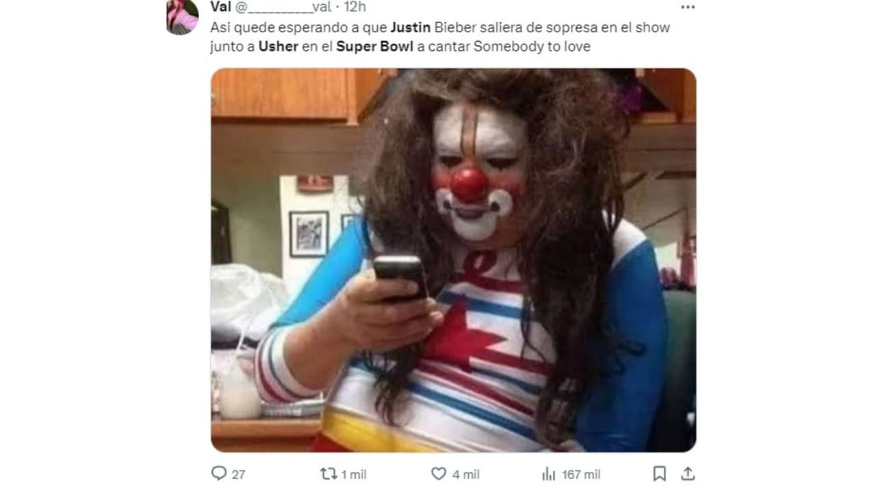 "Quedamos como tontas esperando a Justin", "Enojada con la vida porque Justin no estuvo con Usher para cantar", "Dejo de ver el Super Bowl ahora porque Justin no salió con Usher", "Justin estuvo en el Super Bowl y nada le costaba darle al mundo lo que quería, verlo con Usher bailando", "Quedé con la ganas de ver a Justin con Usher, QUEDÉ PICADISIMA", o "Usher no quería que Justin lo opacara y change my mind por eso no lo subió jaja muy listo él".