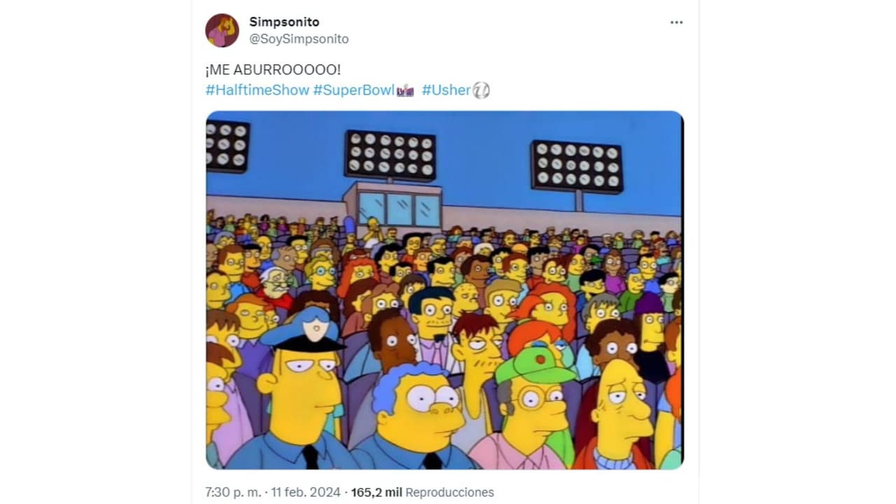 "¿Ese fue el show de 1/2 tiempo?", "Caramba ya no se esfuerzan en nada", "El Super Bowl de anoche fue éxito sin precedente, la única excepción fue la deprimente y necrosada música de ese infeliz personaje bla bla bla bla USHER", "Sin duda el #HalftimeShow más aburrido", "Esas canciones de Usher del medio tiempo son como del 91 o antes", "No esperaba nada interesante y aún así me aburrió", "Tanto dinero para tan poca cosa" o "Mejor no hubieran hecho nada", fueron algunos.