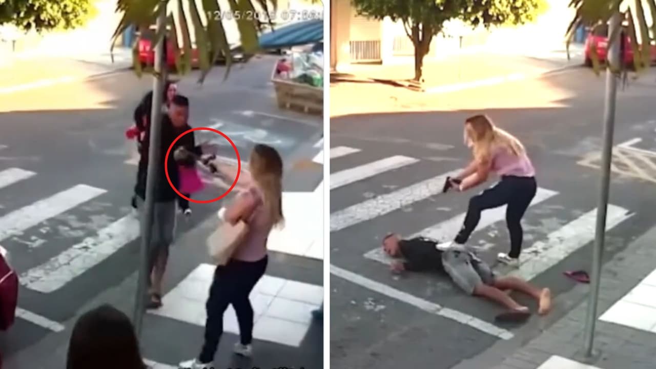 En su intento por quitarles sus pertenencias, comenzó a forcejear con los presentes; no obstante, una mujer que vestía de rosa reaccionó ante la situación y sacó de su bolso una pistola, la cual disparó de manera casi inmediata hacía él.
