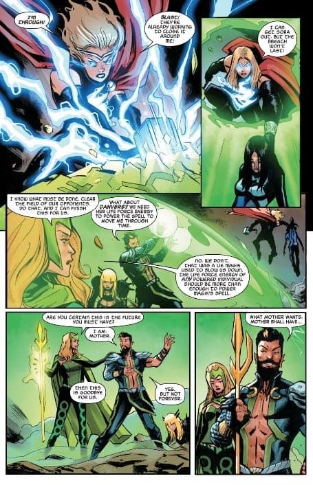 A lo largo de la trama, se da a conocer que Ove es el hijo de la asgardiana Enchantress y Namor en el futuro. Si bien todo puede resultar una compleja trampa de Magik, será Enchantress quien tome la dura decisión de sacrificarse.
