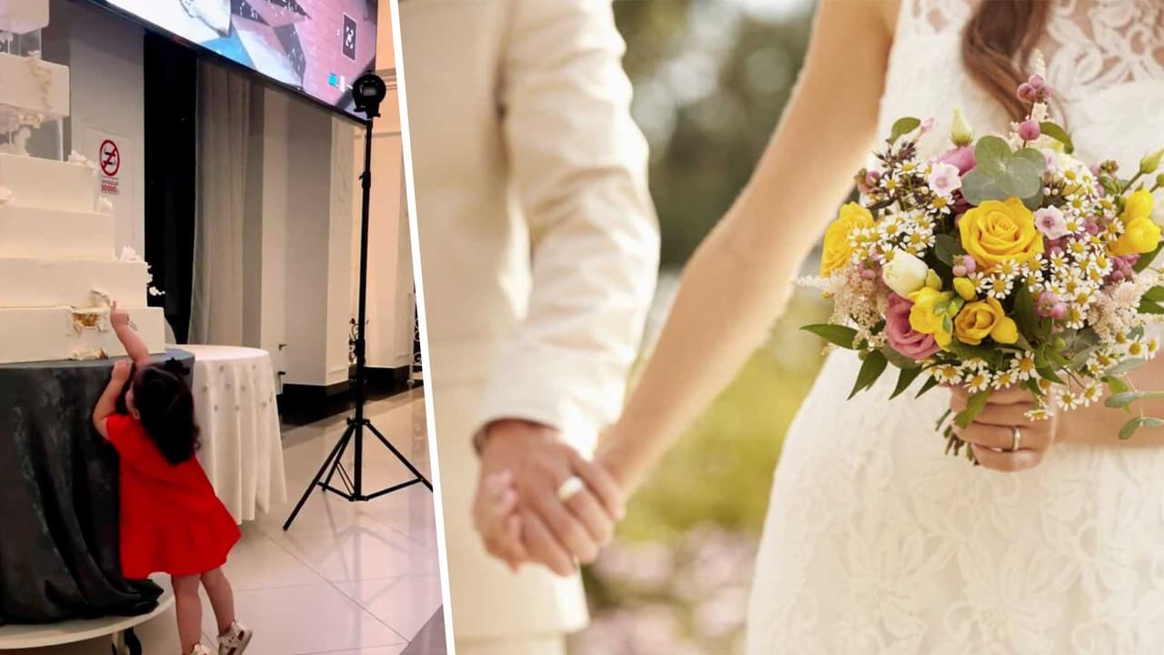 Esta niña quiso darse un gusto con el pastel antes de que los novios llegarán a él y su travesura ha generado todo tipo de opiniones en redes.