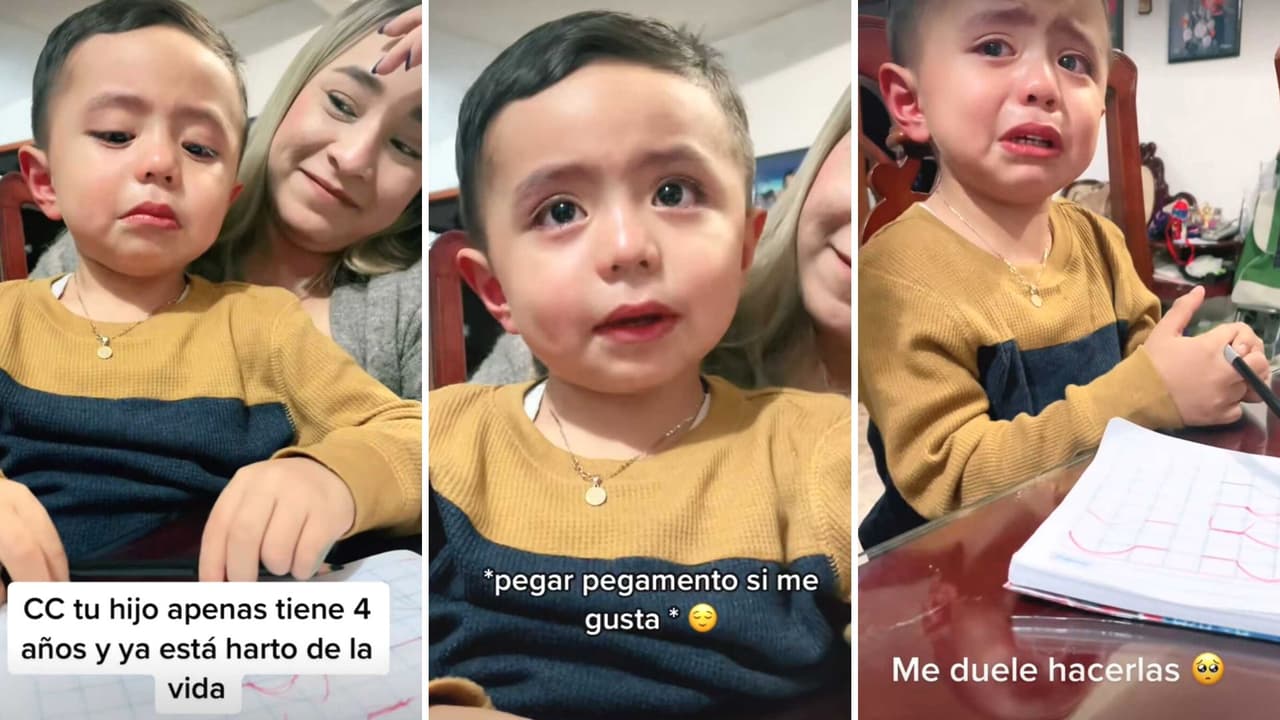 Niño de 4 años explota por tener que hacer tarea y su queja se hace viral:"Me tiene bien harto"