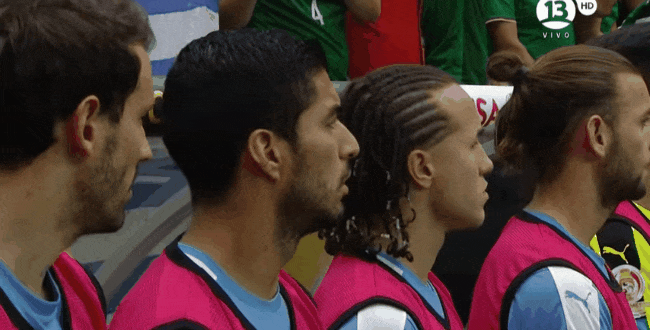 Sucede que antes de comenzar el partido, durante la presentación de ambos equipos, le pusieron el himno de Chile a Uruguay. La reacción de los jugadores es imperdible.