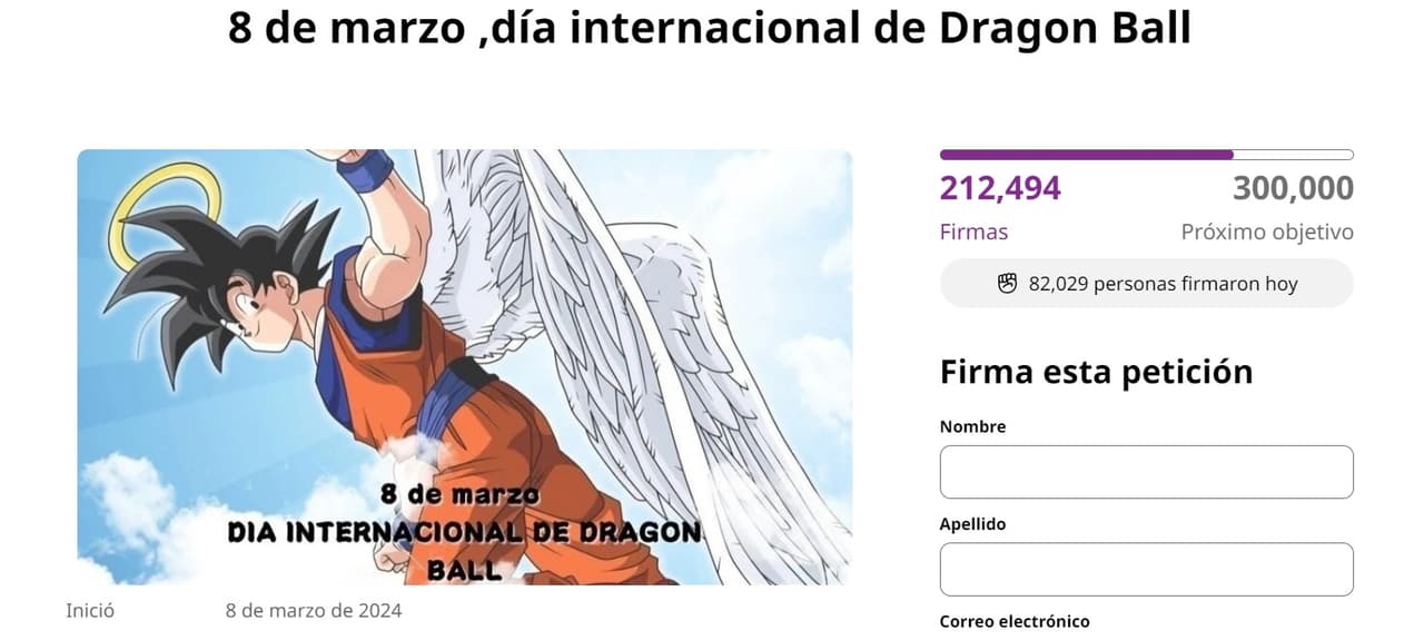 De acuerdo con la página de Internet, hasta el momento se tienen más de 200 mil firmas y ha estado activa desde hace dos semanas, es decir, desde el 8 de marzo, momento en el que la muerte de Toriyama aún era un tema en tendencia.