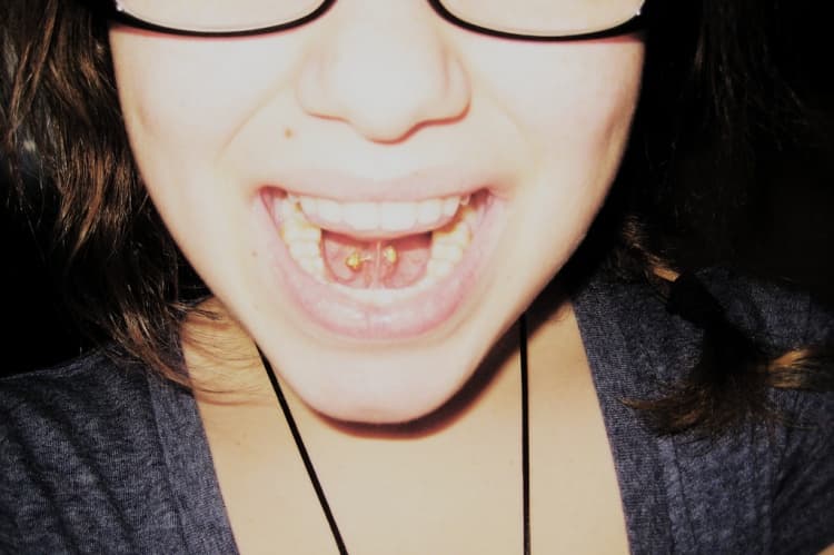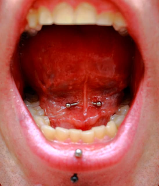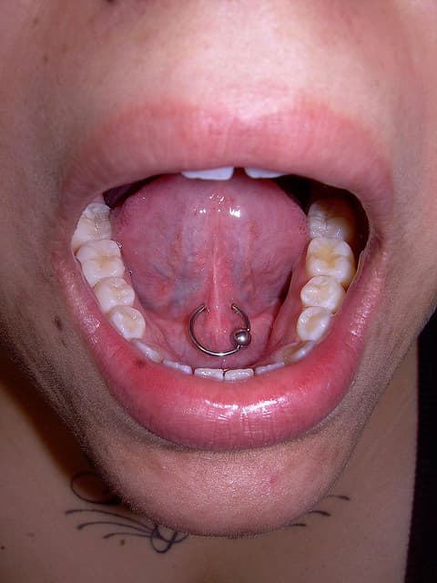 Debes tener mucho cuidado con este tipo de piercing, pues no todos los frenillos están capacidados para ser perforados. Si notas que tu lengua no puede sacarse tanto como la de tus amigos, puede que tengas anquiloglosia, un problema por tener el frenillo extremadamente corto que causa problemas para hablar.