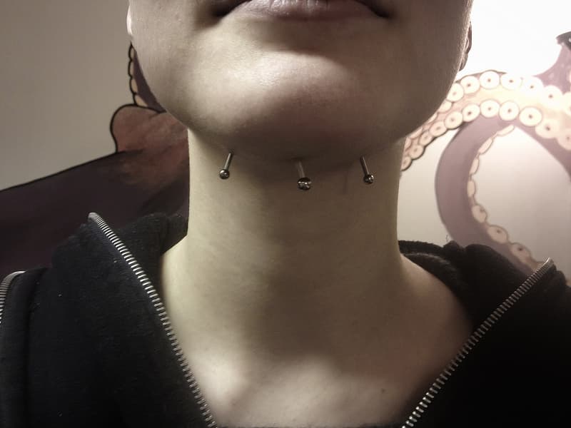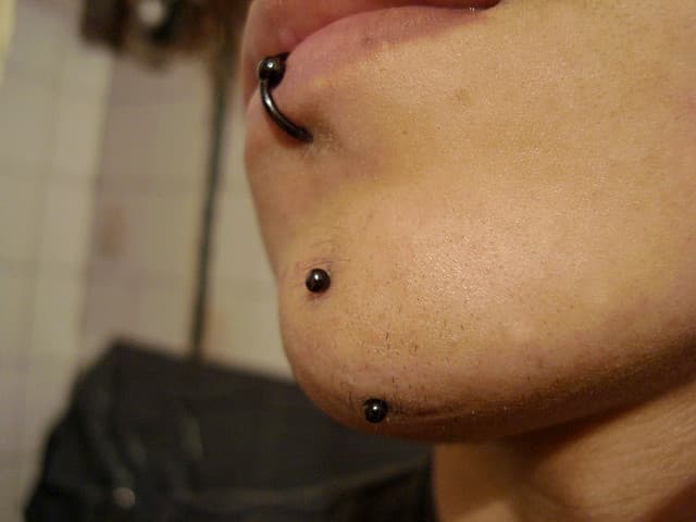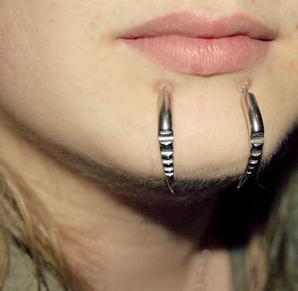 El piercing en la barbilla es un piercing muy poco usual en una zona muy poco usual, se trata de un surface piercing que atravieza la zona carnosa de nuestro mentón, sin pasar por nuestra boca. Generalmente se coloca horizontalmente, es decir, va de lado a lado. Pero también puede ir de arriba a abajo de nuestra barbilla, verticalmente (esta otra forma es menos usual, pero sana más rápidamente).