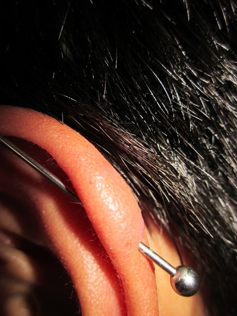 Sergio Andrés ha compartido con nosotros a través de nuestro correo de envíos el piercing que se ha hecho. Se trata de una perforación del tipo “piercing industrial”, es decir una pieza en forma de barra que atraviesa la parte superior de la oreja.