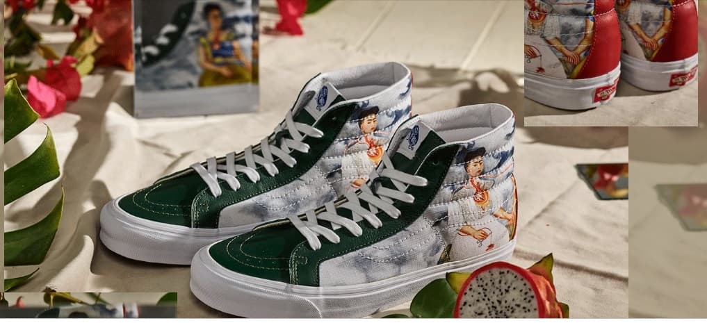 Por último, pero no por ello menos hermoso, está el OG Sk8-Hi LX su imagen se extrae del cuadro Las dos Fridas (1939). Fue el primer proyecto a gran escala realizado por Kahlo, y es considerado el más sobresaliente de todas sus obras.