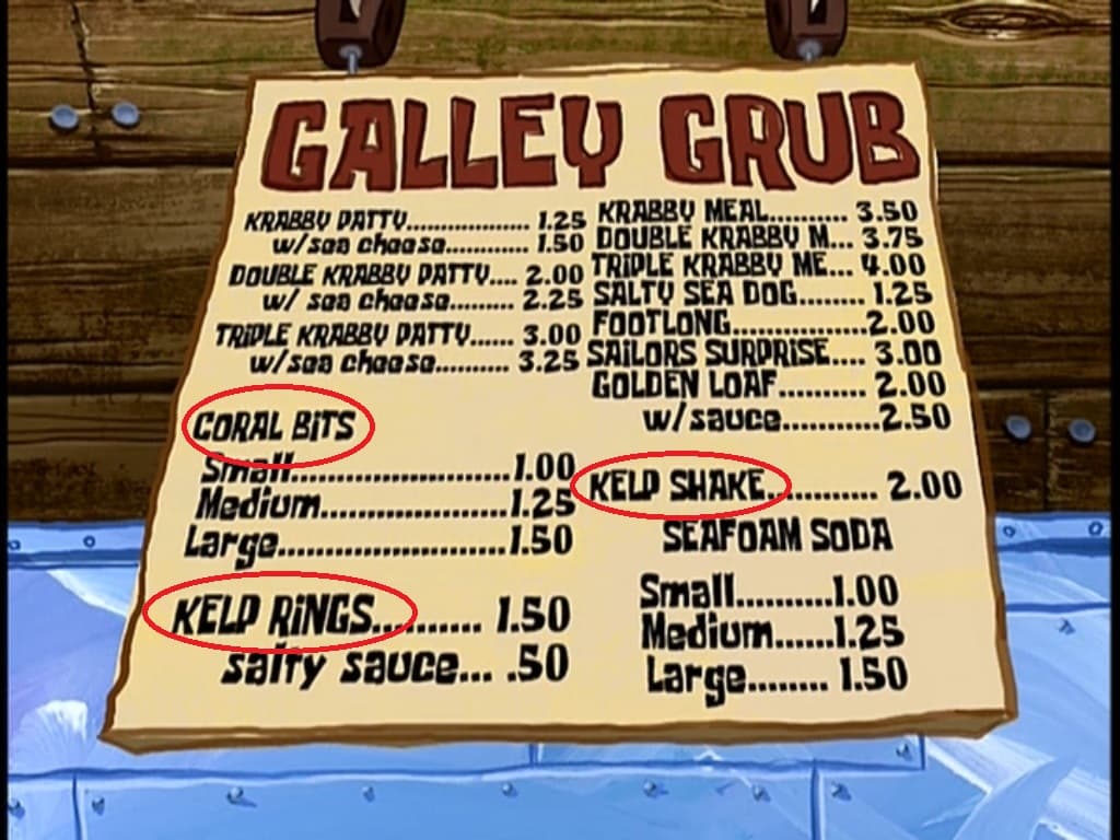 Como se ve en la imagen hay aros de algas y también pedazos de coral. Entonces... las cangreburger tiene cangrejo.