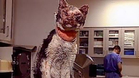 Luego de asegurarse de que todos estaban bien, se desmayó. Tenía su cara, orejas y patas con quemaduras severas y poco quedaba de su pelaje.