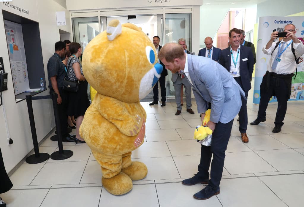 Harry se despidió de los presentes tras una breve charla y la presentación de nuevo equipo en el hospital... y después de bailar con el oso Theo, la mascota oficial de mencionado centro médico.