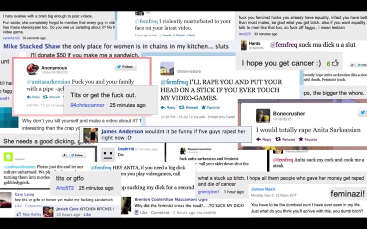 Lo desagradable del caso fueron las muestras de violencia de género por parte de los “gamers” hacia Anita, al grado de organizar una campaña de intimidación en contra de ella. ¿No me crees? Mira esto: