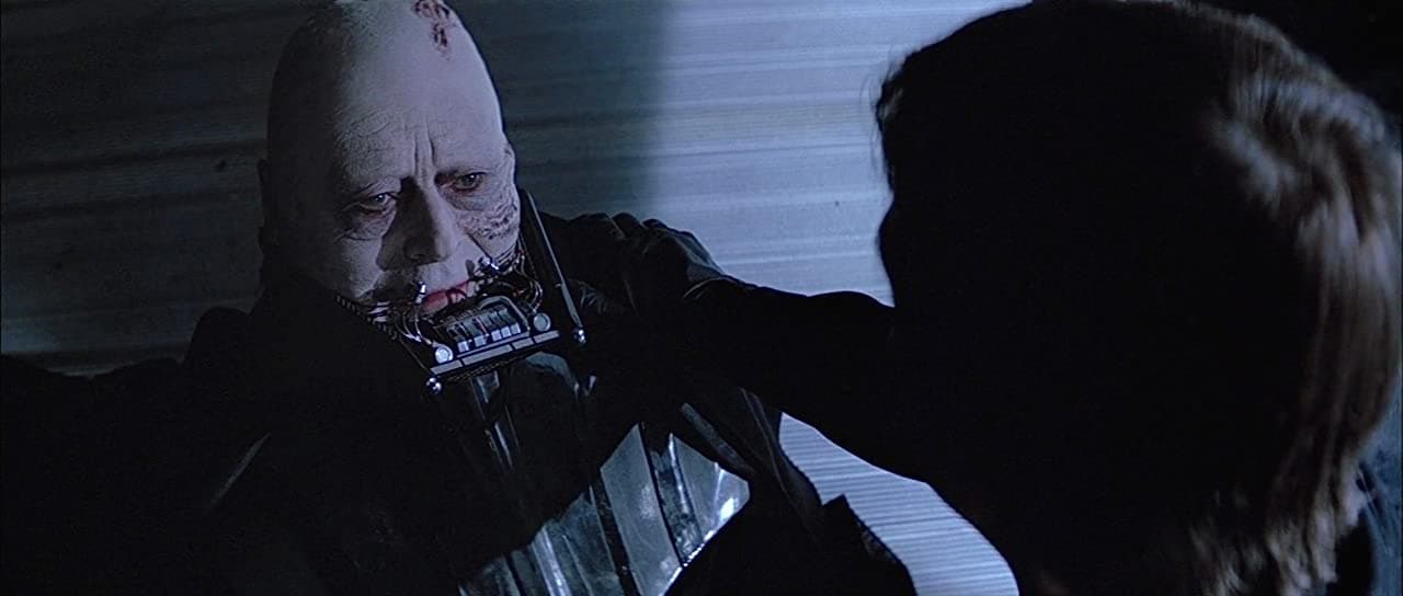 Cuando Luke le quita el casco a Darth Vader después de que le confesara que era su padre, se ve el rostro de Sebastian Shaw como el villano principal de la franquicia.